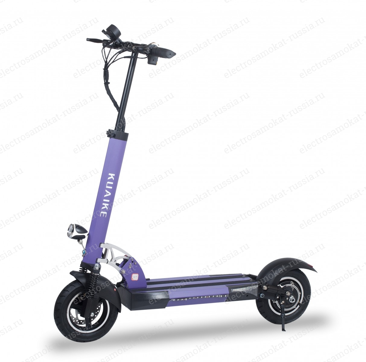 Электросамокат Kuaike K2 Фиолетовый – электросамокат, описываемый одним словом – мощность. Мотор, включающийся за одну секунду, позволяет встать и рваться с места с первых секунд. Электросамокат для ценителей электротехники. Благодаря стильному, но сдержанному дизайну и отличным характеристикам привлекает внимание окружающих. На данной модели не только комфортно передвигаться в городе по асфальту, но также удобно и по бездорожью, поскольку пневматические колеса диаметром 10 см обеспечивают возможность легко проехать даже по лесным тропинкам.